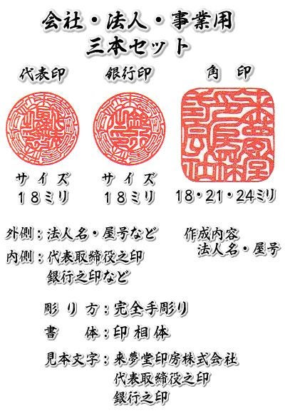 会社印鑑3本セット(代表印+銀行印+角印)